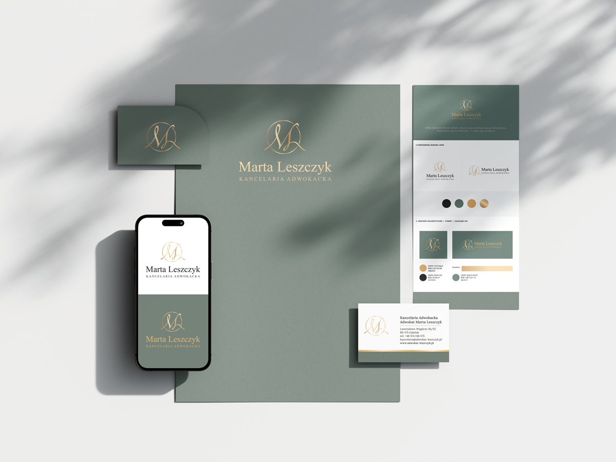 Projekt logo wraz z identyfikacją wizualną dla Kancelarii Adwokackiej Pani Adwokat Marty Leszczyk