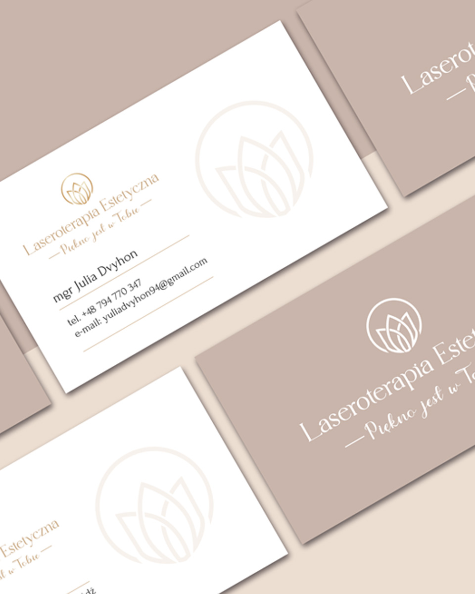 Przygotowałam wszystkie elementy niezbędne do budowy wizerunku marki w branży kosmetologicznej i medycyny estetycznej – od logo, przez wizytówki, aż po kompletne projekty graficzne dopasowane do gabinetu.