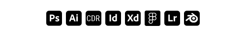 Adobe Photoshop, Adobe Illustrator, Adobe InDesign, Adobe Lightroom, Adobe XD, Figma, CorelDraw, Blender, Canva.